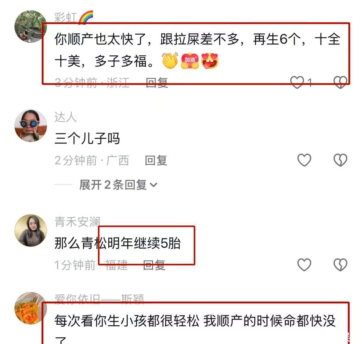还有网友将锋芒指向她的活命,“详情是有钱有保姆,无谓我方带娃,才能这样随意”“生这样多即是为了拼女儿,靠孩子维系婚配,有什么好夸耀的”,以至有东谈主嘲讽她是 “生养机器”,靠赓续生子保管网红热度。