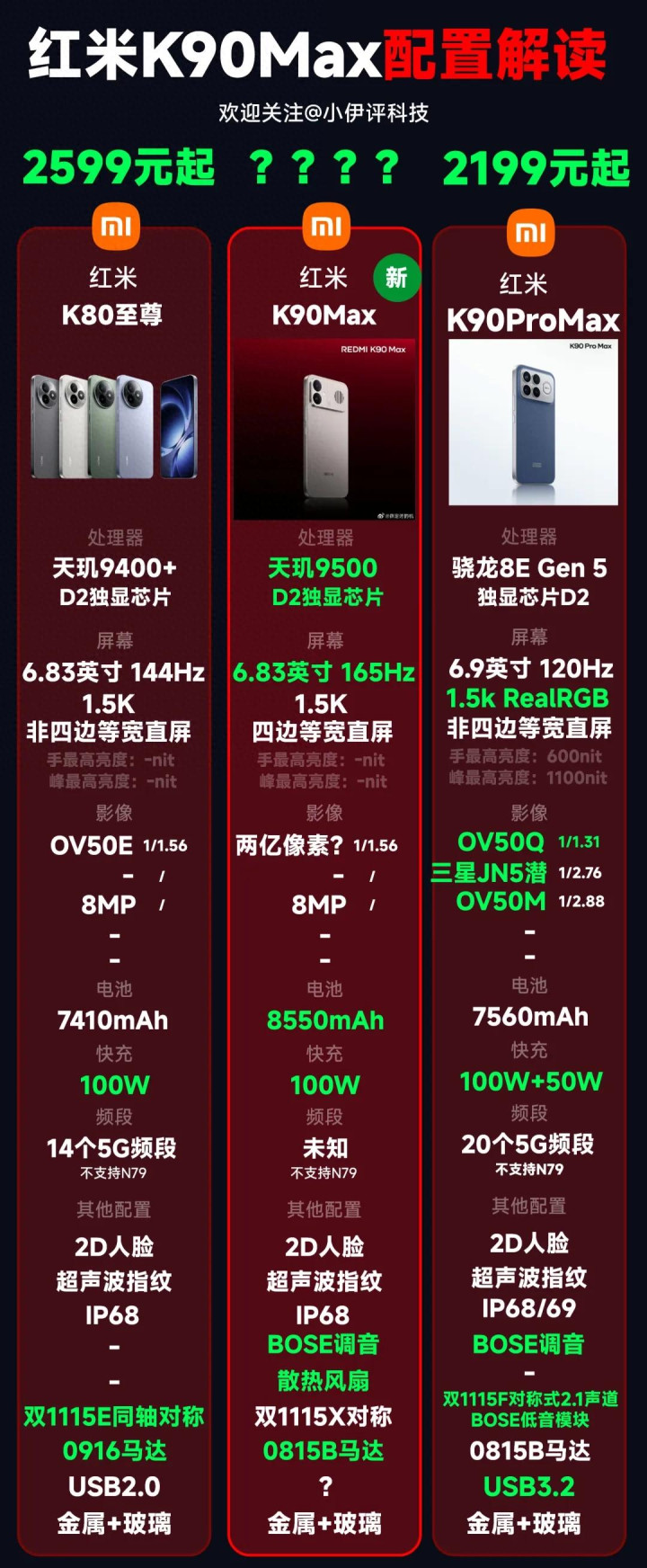 跟着发布日的左近,红米K90Max的干系建设依然越来越明晰了,笔者也基于当今已知的一些建设信息给各人作念一个横向的对比,对比机型主淌若红米K80至尊以及红米K90ProMax。