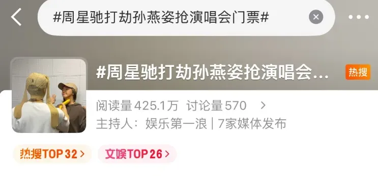3月13日,“周星驰洗劫孙燕姿抢演唱会门票”话题冲上热搜。