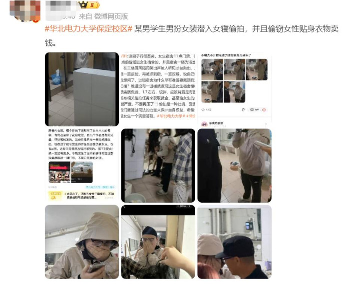 4月24日,华北电力大学保定校区多名学生在酬酢平台发帖爆料,称该校别称男生戴假发深切女生寝室楼茅厕,被就地收拢后,当地派出所已将其带走造访。