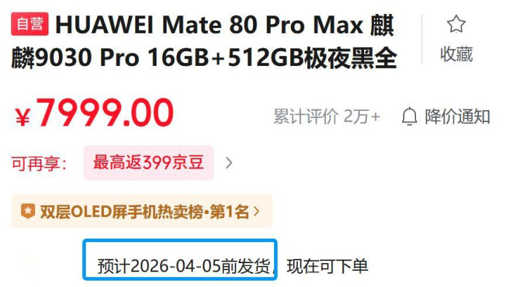 在京东自营等官方渠说念平台,Mate 80 Pro Max一样不错下单,页面剖判展望4月5日发货。