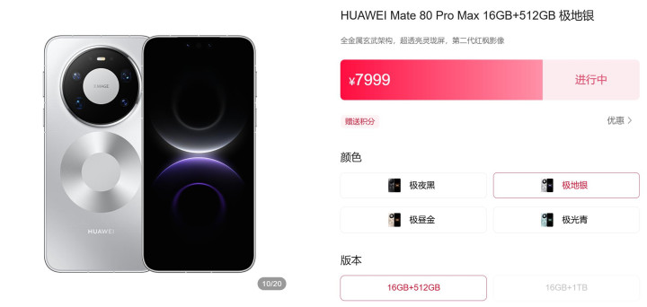 继Mate80Pro部分版块现货开卖后,近期华为商城官网剖判,Mate80系列最香机、主推家具:Mate 80 Pro Max,不少版块照旧毋庸抢购,绽开了下单购买。